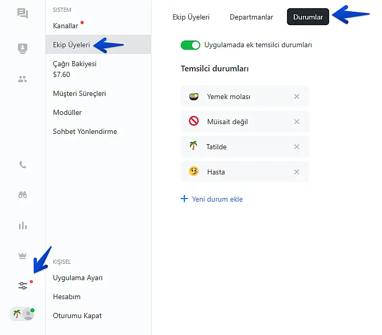 Temsilci durumları özelliği nasıl aktifleştirilir?