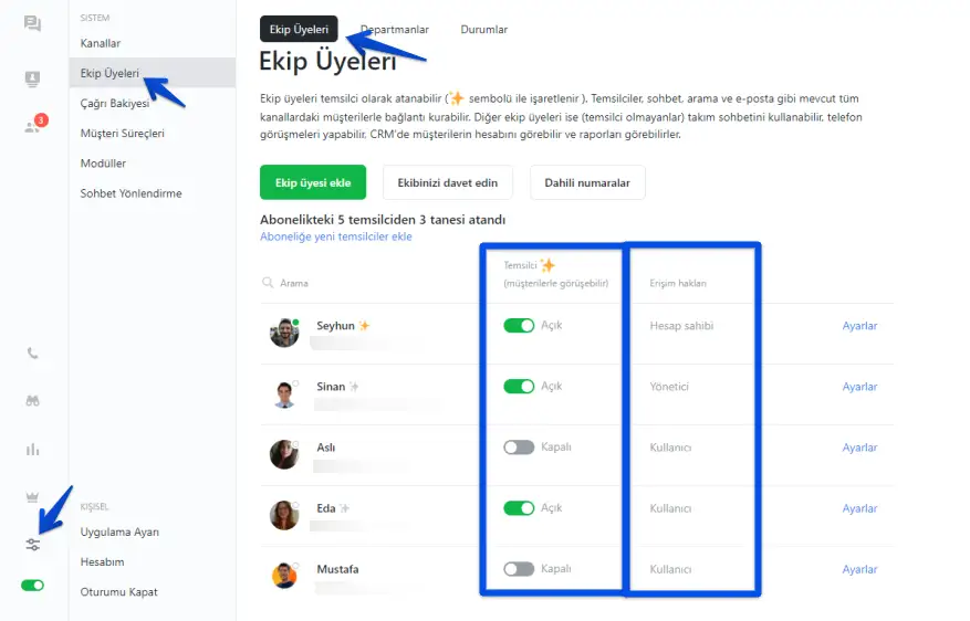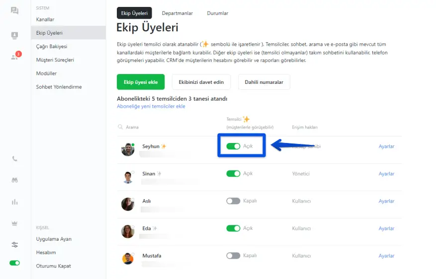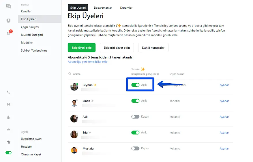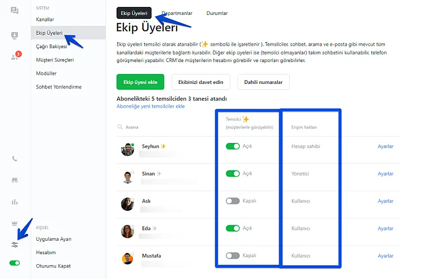 JivoChat'da ekip üyeleri ve rollerin tanımlanması