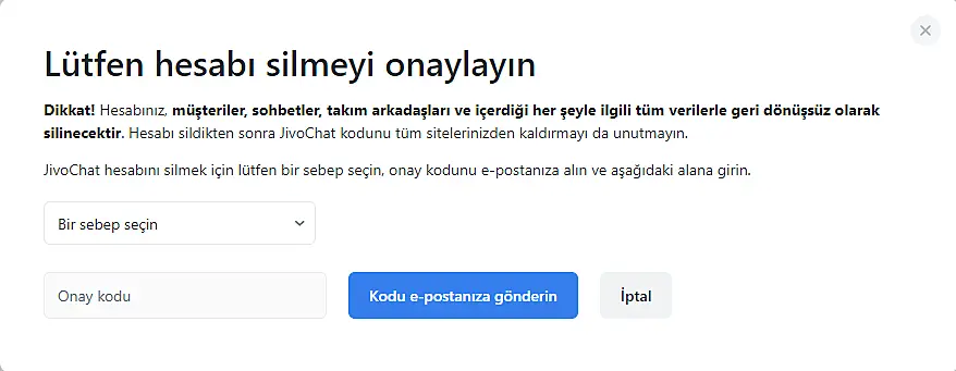 Hesap sahibi ve JivoChat hesabını silme