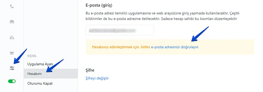 E-posta doğrulaması JivoChat masaüstü uygulaması veya web uygulaması aracılığıyla yapılabilir.