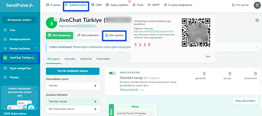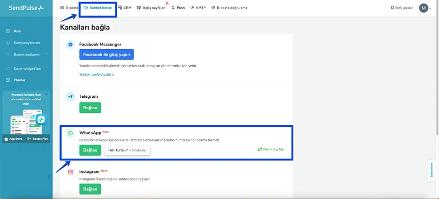 Ardından, mesaj şablonları eklemeye başlayın, kişiselleştirilmiş bültenleri oluşturun ve chatbot akışlarınızı özelleştirin.