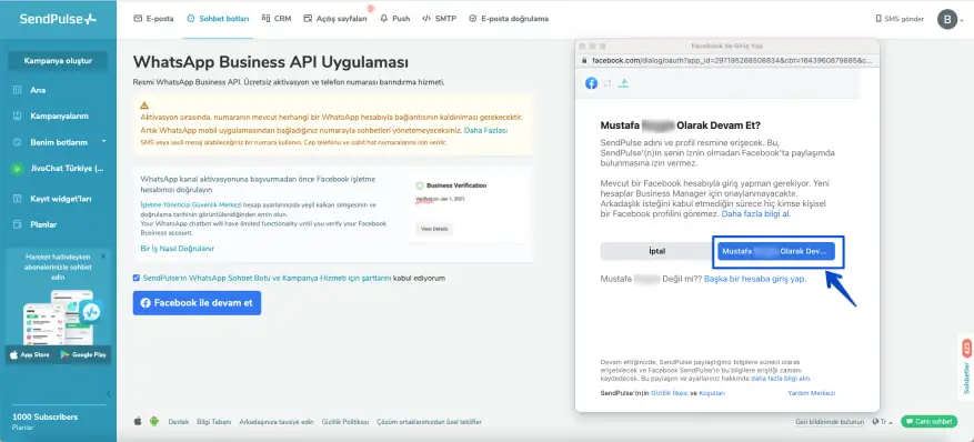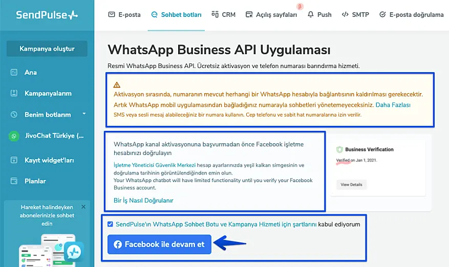 WhatsApp Business hesabınızı SendPulse aracılığıyla nasıl JivoChat’e bağlarsınız