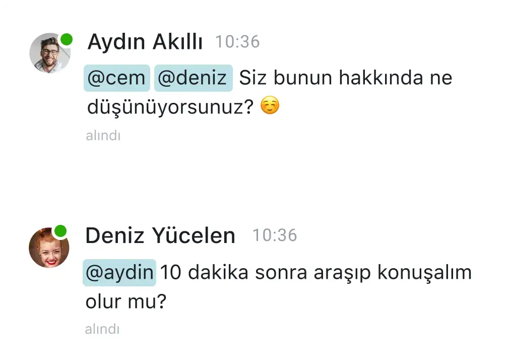 Belirli bir iş arkadaşınıza, tüm çevrimiçi çalışanlara veya tüm grup üyelerine seslenin
