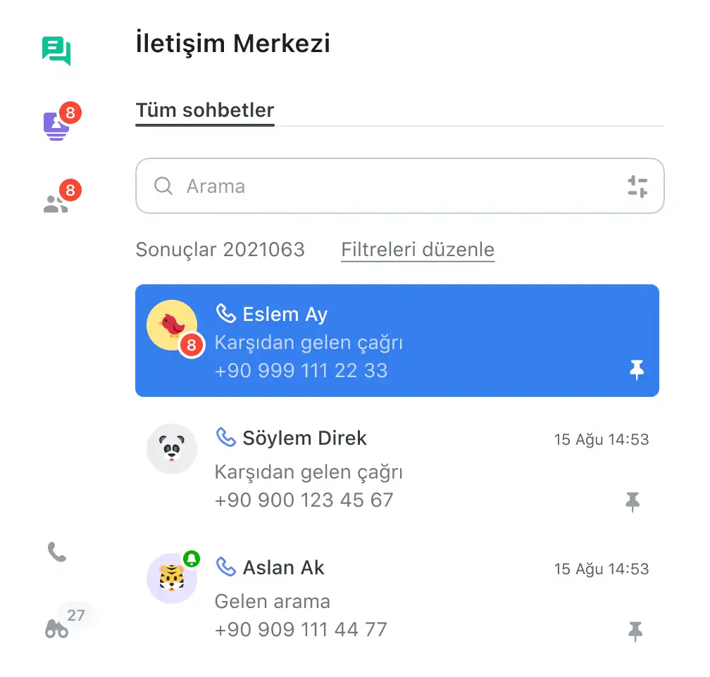 JivoChat, işletmeniz için ihtiyaç duyduğunuz tüm sanal PBX özelliklerine sahiptir, böylece müşterilerinize daha hızlı yardımcı olabilir ve daha fazla satış yapabilirsiniz. Mevcut numaranızı JivoChat'ya bağlayın ya da yeni bir numara satın alın; tek bir uygulamada hem sesli hem de yazılı iletişimin keyfini çıkarın.